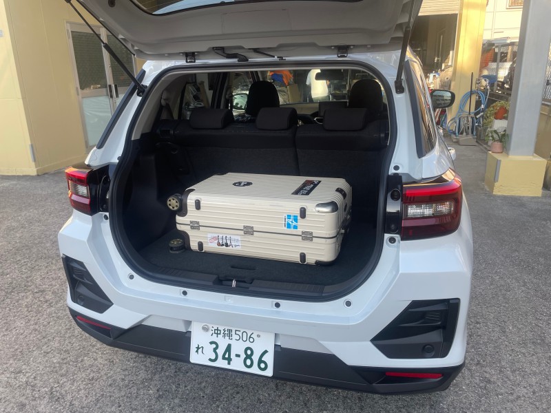 ロッキーはガソリン車のSUV No.1の低燃費となっており燃料タンク容量は36Lが確保されているので、満タンなら700km近い航続距離も走行可能です、沖縄のロングドライブはロッキーにおまかせ♪